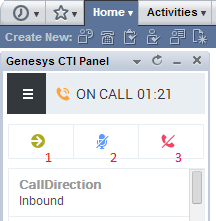 For active inbound calls, the following options, as numbered below, are displayed near the top of the dialpad:
