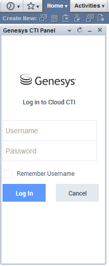 The Log In view is the first view that you see on the Home tab of your NetSuite application. It enables you to identify yourself to CTI Adapter for NetSuite system.