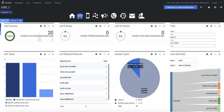 CX Contact (CXC) Analytics is a powerful tool that enables you to obtain an extensive and detailed understanding about CX Contact processes. With a series of different dashboards, CX Contact Analytics offers a variety of visualizations and in-depth reporting panels that highlight specific aspects of Jobs, Calls, SMS/Emails, Campaigns and so on.