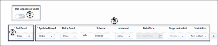 Apply to Record defines the action that results from a given delivery result, delivery result, or disposition code. In the example statement If the delivery result is Busy, redial the number, the Apply to Record action is Redial.