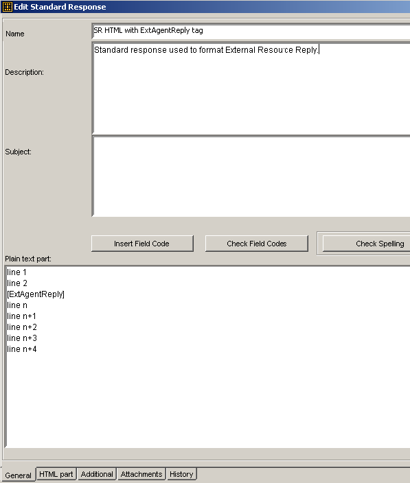 - Create a new standard response in Knowledge Manager containing the tag [ExtAgentReply]. The following figure shows a sample plain-text version.