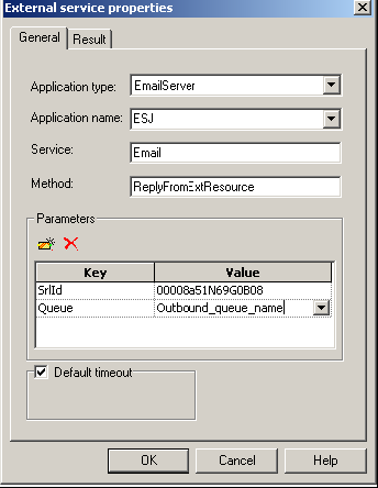 - In the strategy, create an External Service block to call the E-mail Server's CreateReplyFromExtResource service. See the figure below for an example.