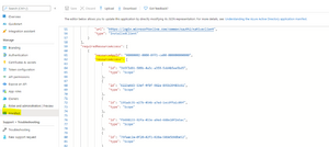 Users can manually edit the requiredResourceAccess attribute by adding IMAP.AccessAsUser.All, POP.AccessAsUser.All, and SMTP.Send. The following example shows the related part (requiredResourceAccess) in the manifest of an Azure app. The app has all 5 permissions. As Microsoft continues to expose the User.* and EWS.* permissions under Office 365 Exchange Online, users can add these two permissions in the Azure UI. The requiredResourceAccess attribute contains two items. Then, the user can manually add the items that represent IMAP.AccessAsUser.All, POP.AccessAsUser.All, and SMTP.Send under the same resourceAccess of the same resourceAppId. The ID values for IMAP.AccessAsUser.All and other protocols could be different for different apps. The Exchange Admin must find it out.