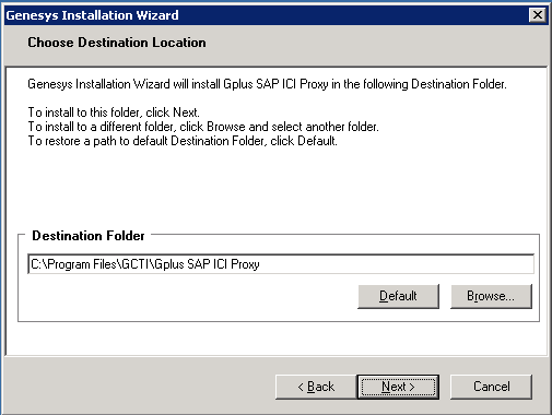 - Under Destination Folder, keep the default value or browse to the desired installation location.