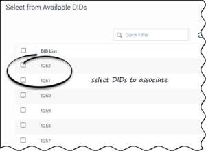 - Use the '+' icon to add a single DID from the available list. Optionally you can use the quick filter to filter the DIDs in the list to include or exclude by selecting and clearing the box to associate with the newly created DID Group.