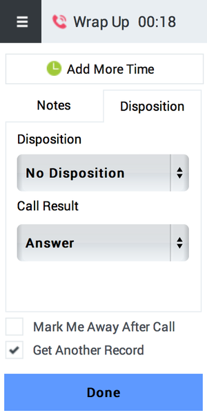 After recording a disposition for a call or preview record, the the next preview record is automatically retrieved if the Get Another Record check box is selected.