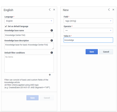 - Click Save. The knowledge base will be created.