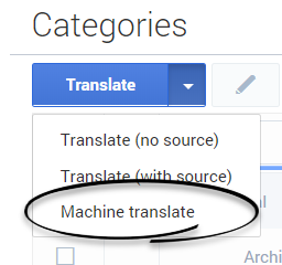 | Click the arrow next to the Translate button in the toolbar and choose Machine translate from the menu. | |