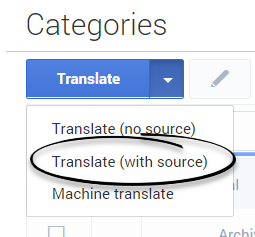 | Click the arrow next to the Translate button in the toolbar and choose Translate (with source) from the menu. | |