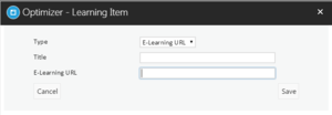 When creating an E-Learning URL, you will be required to enter a title and URL for the new item. The URL must start with either ‘http://’ or ‘https://’. Similarly, if you choose to create a free text learning item, you will be required to enter a title for the item and the associated text.