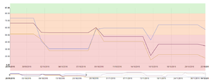 A smaller time frame can also be selected by dragging the tabs at the ends of the mini graph below the main one, allowing for zooming in to times of interest.