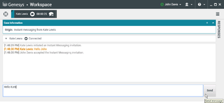 thumb|center|Interaction window displaying an Instant Messaging session that was initiated by another agent