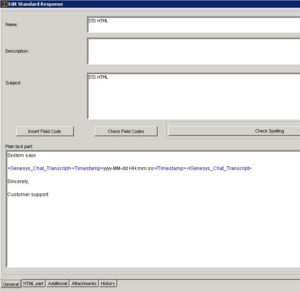 - Backward compatibility remains: if the standard response does not contain the new delimiters <Genesys_Chat_Transcript> and </Genesys_Chat_Transcript>, it works as in previous versions.