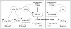 Alternatively, IS-Link may associate two calls that continue each other, connected together through association with the same external participant, for instance, an incoming call overflowed or re-routed by an external network to another switching domain.