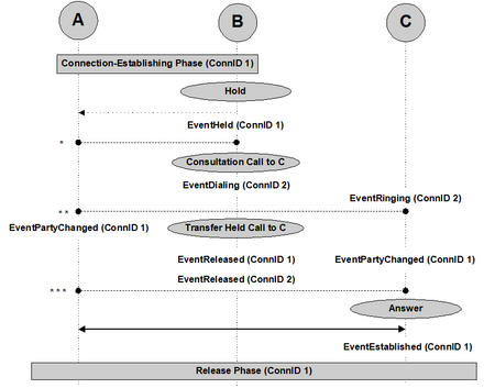 The call models here show the functions and events related to placing calls on hold, transferring calls, and creating conference calls.