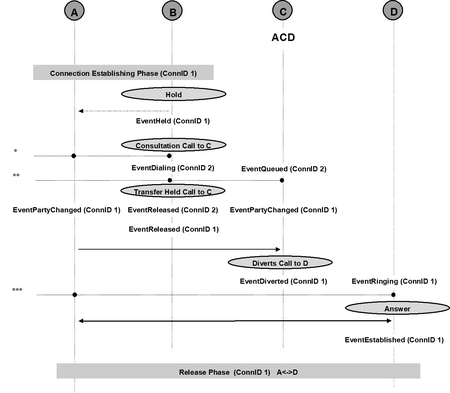 The call models here show the functions and events related to placing calls on hold, transferring calls, and creating conference calls.
