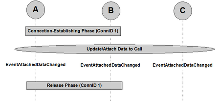 The following graphic and table describe attaching/updating user data to a call by a third party.