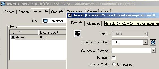 - Configure an additional “access point” port (the name of this port is unimportant) on every Stat Server node, and specify for it a number that must be the same for all “access point” ports in Stat Server nodes.
