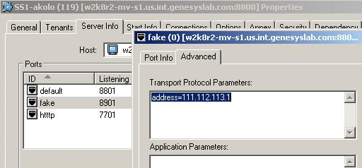 - For the access point port of each Stat Server node, set the Transport Protocol Parameters on the Advanced tab to address=<dedicated IP address of node>, where <dedicated IP address of node> is the unique IP address created at Step 1 for the node.
