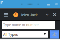 When you select Team Communicator, a toolbar is displayed. Enter a name, telephone number, or other keywords in the field to begin your search. As you type, the Team Communicator suggests known agents, contacts, and other resources. Click on the name of the person that you want to contact from the results list. You can still start an interaction with someone who is not in your company database by typing in the full telephone number and then clicking the Call button beside the phone number: